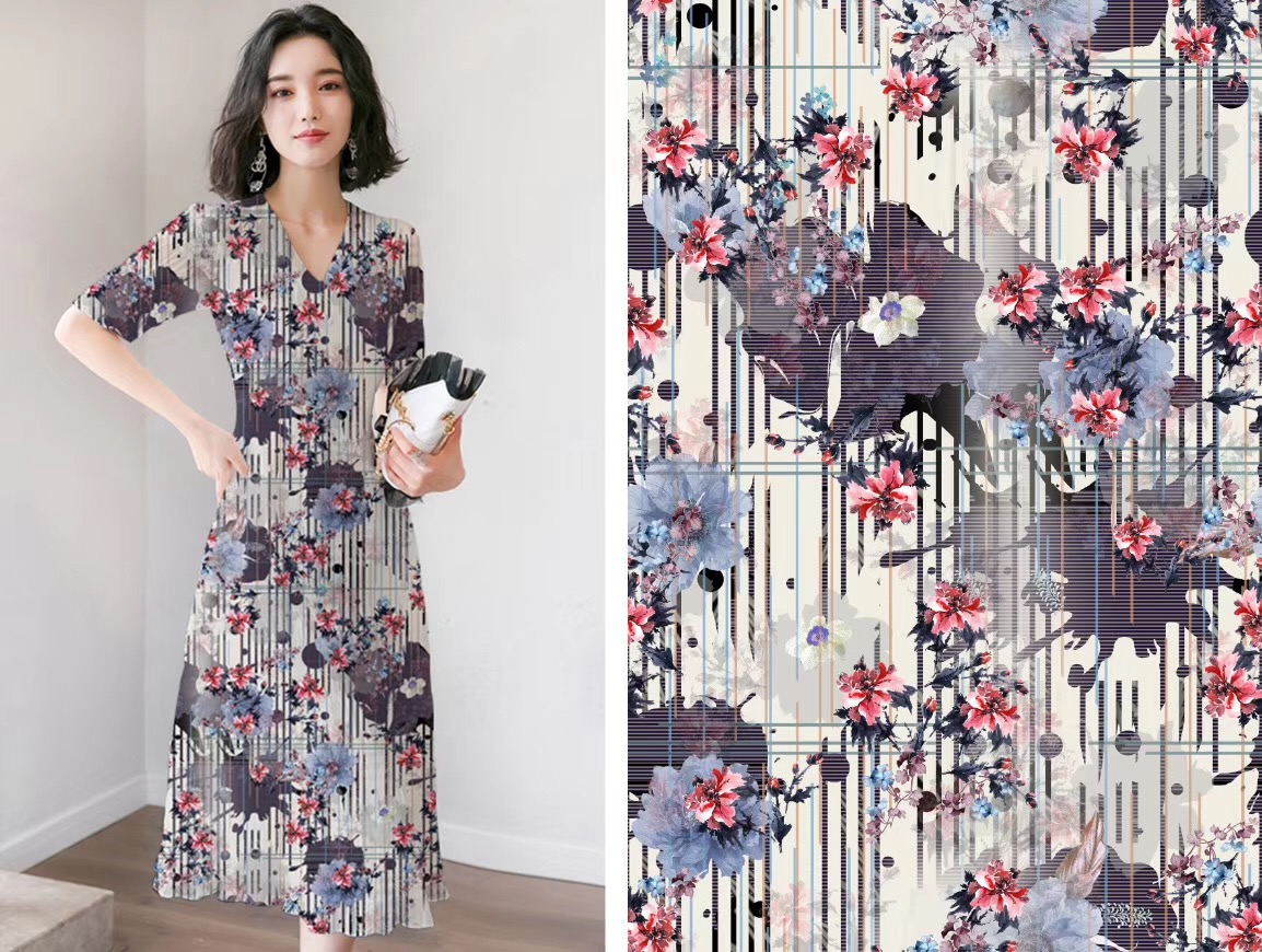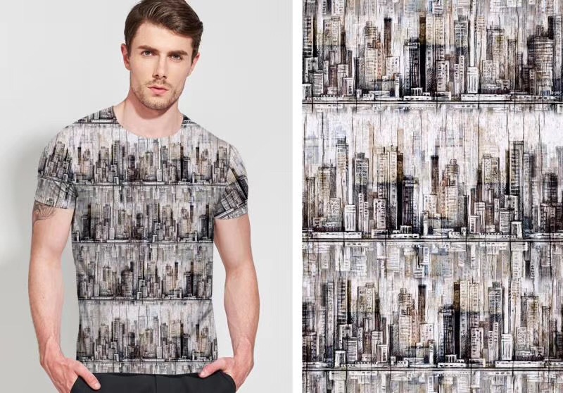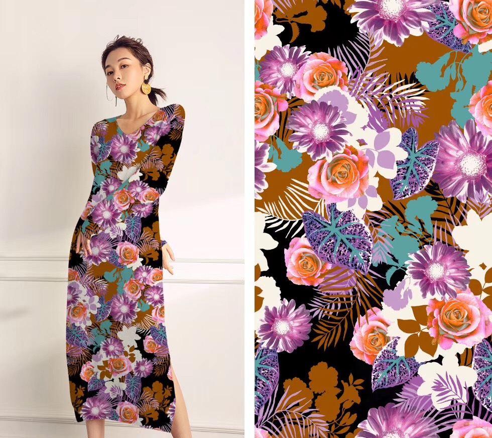 產品關鍵字:數碼印花,四面彈,拉架,牛奶絲,滌氨綸