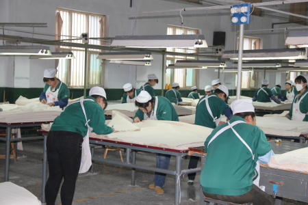 公司有脫膠、梳理、紡紗、準(zhǔn)備、織造、服飾5個生產(chǎn)車間,擁有從美國、日本、德國、法國、意大利、瑞士、比利時等國引進(jìn)的精梳機、自動絡(luò)筒機、轉(zhuǎn)杯紡紗機、并條機、無梭織機、電子提花機、平縫機、免燙焗爐等國際一流紡織、服裝加工和技術(shù)檢測設(shè)備1000多臺(套),其中:擁有國內(nèi)目前惟一一條從漢麻原麻脫膠至成品加工生產(chǎn)線。主要生產(chǎn)和經(jīng)營純漢麻、亞麻及混紡紗線、布,有機棉紗線、布,服裝、服飾、家紡等系列產(chǎn)品。年產(chǎn)麻及混紡紗線5000噸,坯布及面料1000萬米,服裝、家紡150萬件套。產(chǎn)品主要出口美國、歐盟、日本、韓國、香港等國家和地區(qū)。