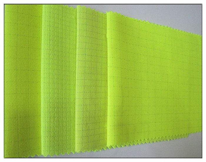 性能:滌、棉均帶永久性熒光黃(通過EN471、GORT-3279、ANSI/ISEA 107標準),滌、棉均永久性阻燃(通過EN11612、EN14116、EN470-1、EN11611、BS5438、ANSI/UL-94、CFR 1615、CFR 1616、法國M1標準),阻燃效果耐水洗30次以上,永久性防靜電(內(nèi)置日本鐘紡進口防靜電纖維,通過EN1149-3標準),防水、防油、防污(通過EN343標準并配有瑞士汽巴Ciba公司出具的“納米”級Teflon吊牌),防化學液體(通過EN13034標準)。阻燃效果耐水洗30次以上,各項色牢度4級以上。